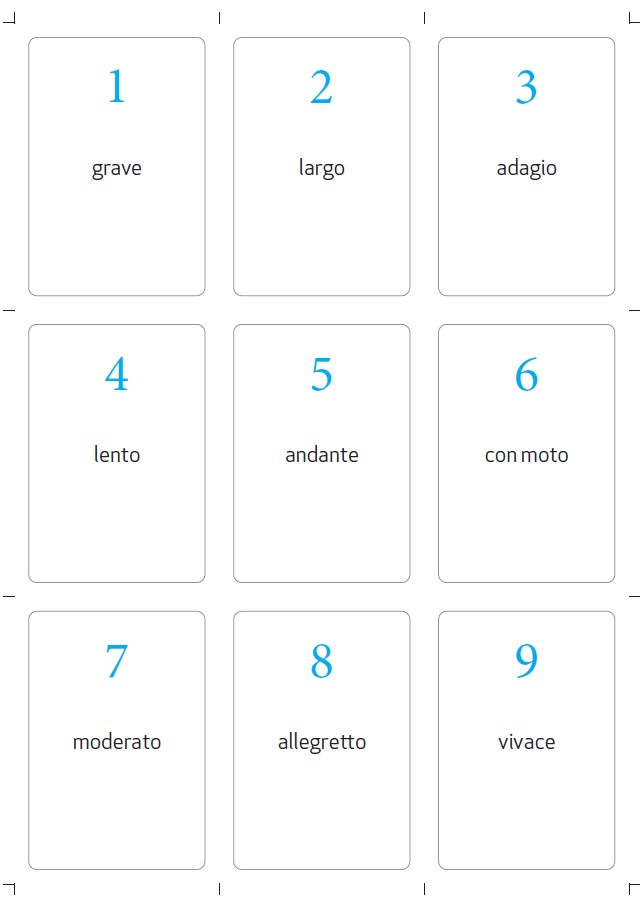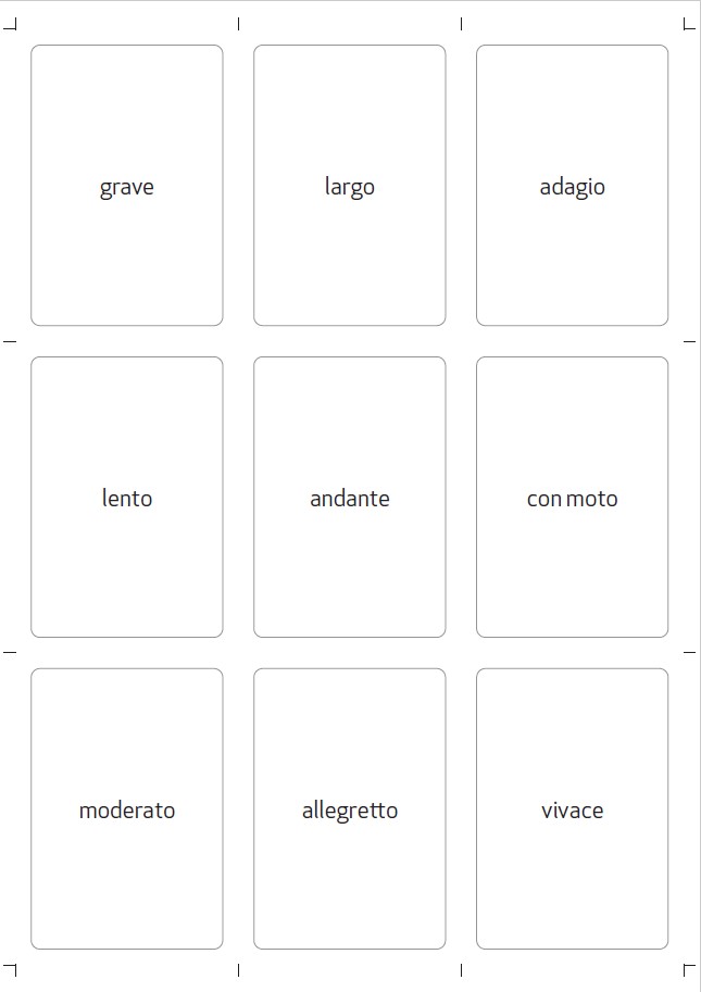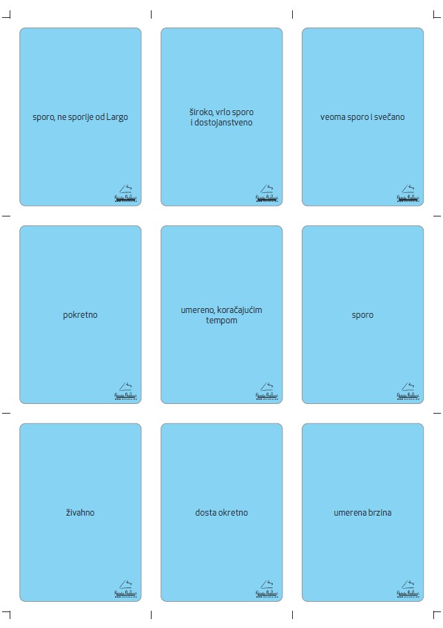 Flesh karte sadrže italijanske nazive muzičkih termina sa značenjima na srpskom jeziku.